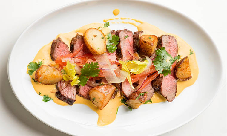 เพิ่มความจัดจ้านให้ต่อมรับรสของคุณด้วยสเต๊กแฟลตไอรอนเนื้อวัวเลี้ยงด้วยหญ้า อาจิ อามาริโย ชุ่มฉ่ำและเต็มไปด้วยรสชาติ ย่างจนสุกกำลังดี