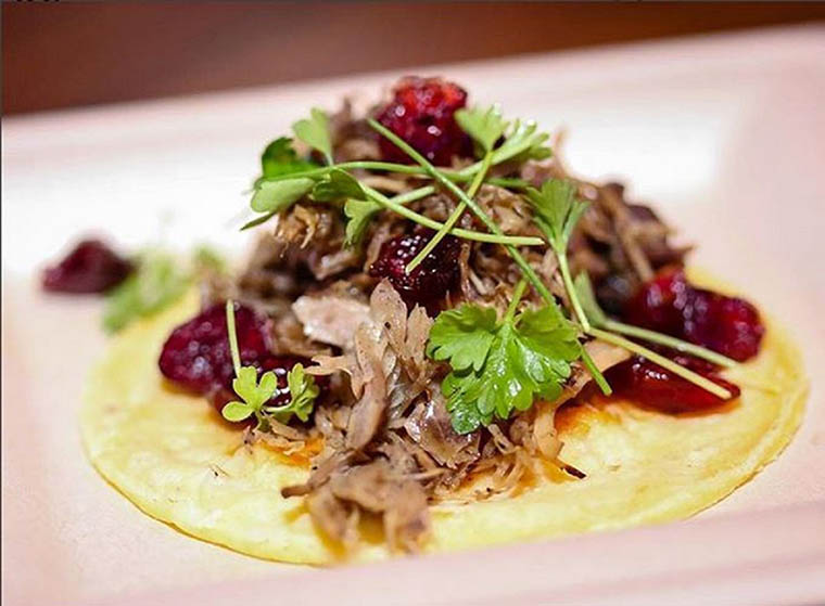 Chef Michelle Lainez Aussie lamb carnitas tacos with pickled cranberries