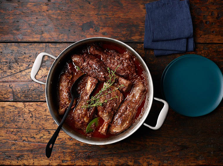 To prep: Preheat oven to 375ºF. Season lamb shanks on all sides with salt and pepper.